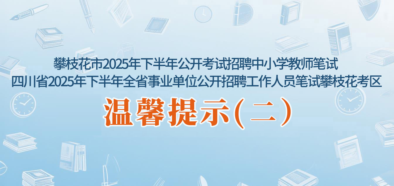 攀枝花市2025年下半年公開(kāi)考試招聘中小學(xué)教師筆試 四川省2025年下半年全省事業(yè)單位公開(kāi)招聘工作人員筆試攀枝花考區(qū)考前溫馨提示(一)2025-11-07